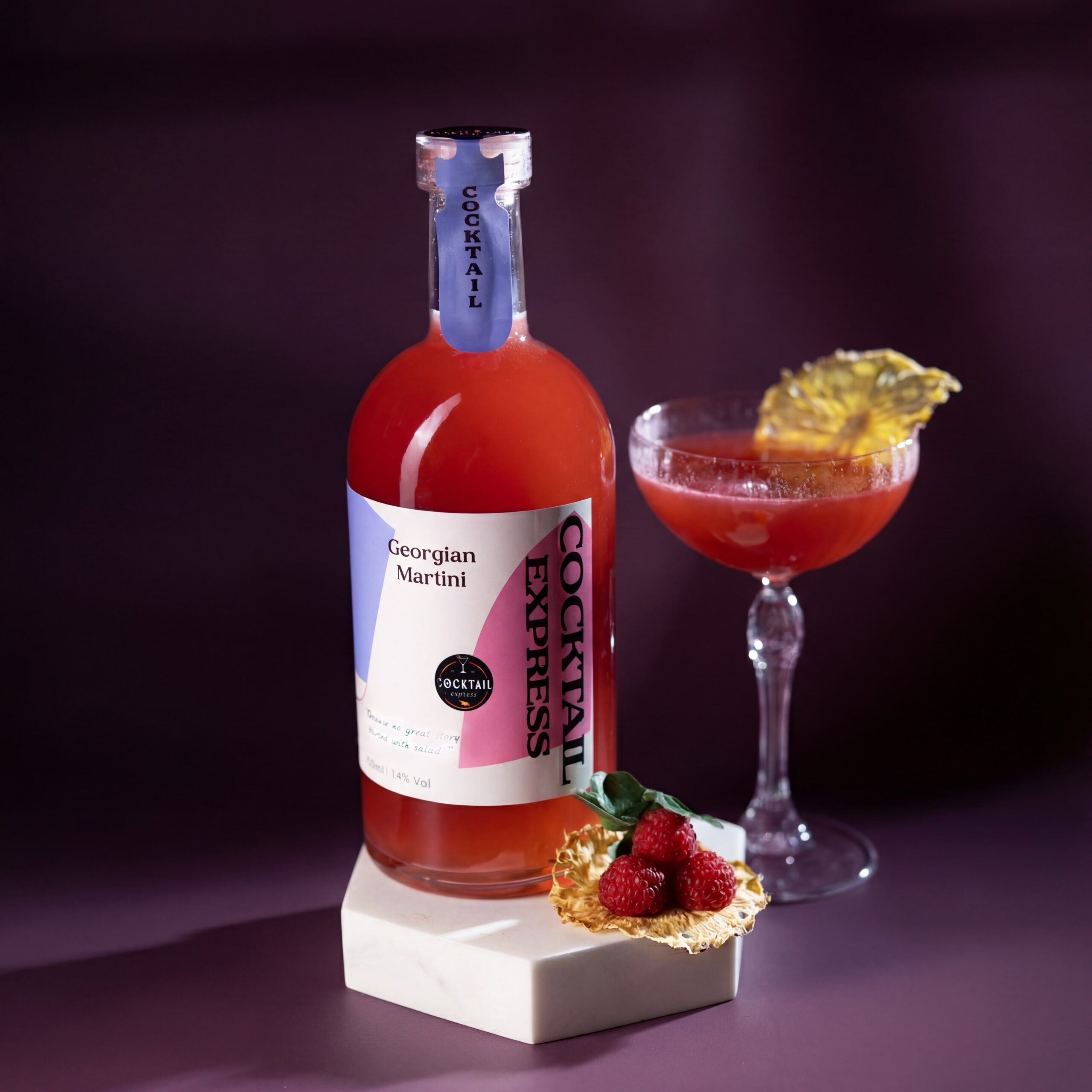 Our original cocktail creation, the Georgian Martini, blends fresh raspberries, lemon, and pineapple-infused vodka into a bright, tropical harmony. Juicy, zesty, and beautifully balanced.